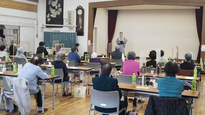 ししぶ区福祉会による花見の会が開催。ししぶ区清原区長、社協の渡会長、明友会の信國会長を来賓に迎え、久しぶりの開催となりましたが、三密を避け、検温や消毒、透明間仕切り設置等のコロナ対策の上、テーブルには花も添えられ華やかな雰囲気に包まれました。また、余興として会員3名による踊りも披露頂きました。コロナ禍の中残念ながら、飲食は自粛しましたが、改めて一日も早いコロナの収束を願いました。