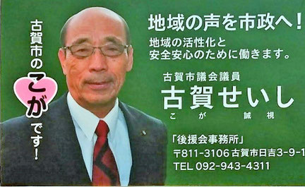 どうかぜひ皆様の一票で古賀せいしを再び議会に送って下さい!