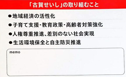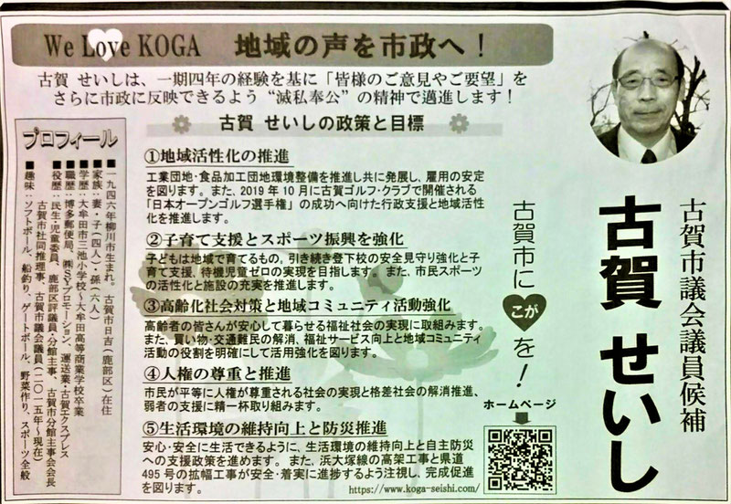 古賀せいしの選挙公報掲載内容を改めてご紹介させて頂きます。