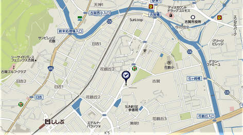 古賀 せいし後援会事務所は、県道495号(旧3号線)の古賀ゴルフクラブ入口・ジョイフル古賀店前です