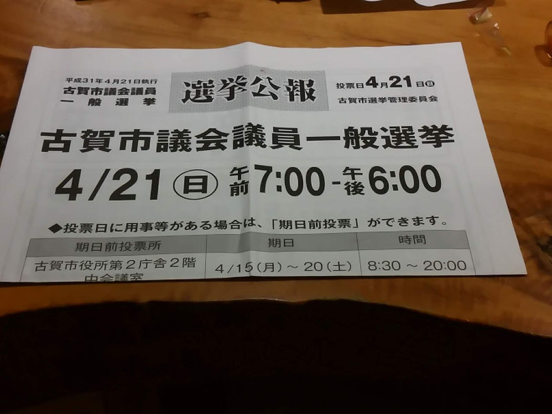 いよいよ本日、古賀市議会議員選挙の投開票日を迎え、身に余る多くの皆様方のご支援・ご信任を頂戴し、再び議会に送って頂ける事となりました。